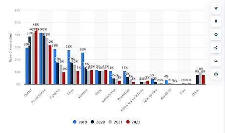 Google’s Flutter has become a major framework in Flutter app development. This is also great for highly performing and cross-platform apps. Flutter’s reactive framework reduces the overall development time and decreases maintenance costs. It also enables developers to create native interfaces for both iOS and Android from a single codebase. Additionally, it is chosen as a great option for iterative development and quick prototyping.